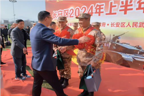 军旅生涯是入伍大学生的一段特殊经历,它将给予同学们独特的人生体验和宝贵的成长机会,必将成为一笔宝贵的财富。随后为入伍的2位同学逐一整理佩戴了大红花,赠送了纪念品。